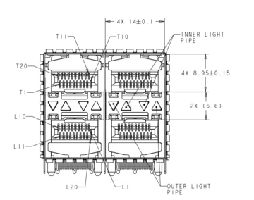 | Connector Style | Receptacle with Cage, Ganged (2x2) | Connector Type | SFP+ | |||||