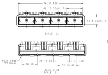 | PCB Thickness (Recommended) | 1.57mm[.062in] | Tail Length | 2.05mm[.081in] |
