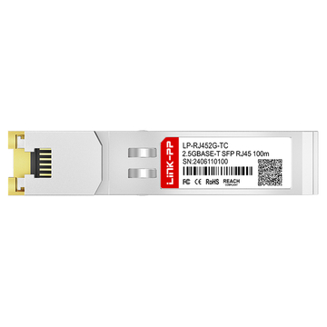 The LP-RJ452G-TC 2.5GBASE-T Copper Small Form Pluggable transceivers are based on the SFP Multi Source Agreement (MSA).They are compatible with the 2.5Gbase-T and 1000BASE-T standards as specified in IEEE Std 802.3. They are RoHS compliant and per Directive 2011/65/EU.